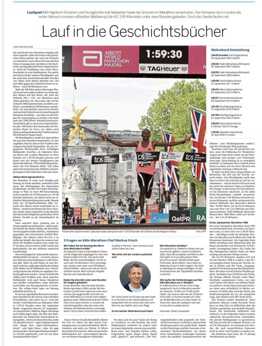 Marathon-Geschichte. In 1:59:30 Stunden* unterbot der Kenianer den Weltrekord seines bei einem Autounfall verstorbenen Landsmanns Kelvin Kiptum (2:00:35 h) um mehr als eine Minute. Nur elf Sekunden