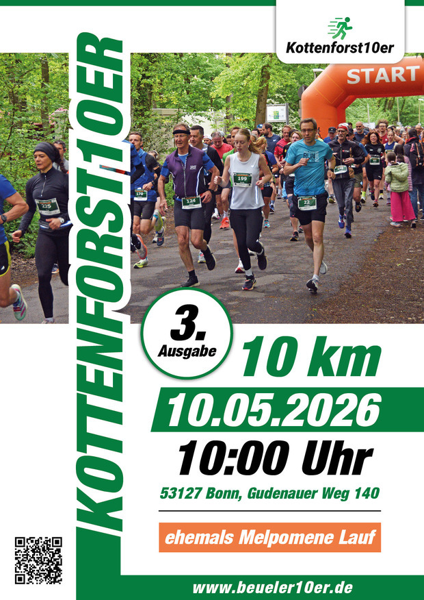 Bonn. Der Kottenforst10er sind vermessene 10km auf Bonns schnellster Strecke. Viele Bonner haben eben genau hier in den letzten Jahrzehnten (Melpomene Lauf war der Vorgänger) ihre